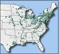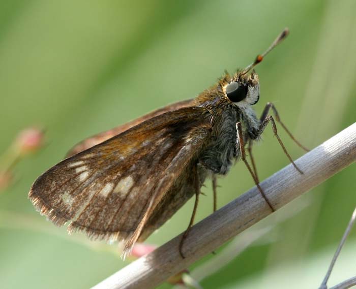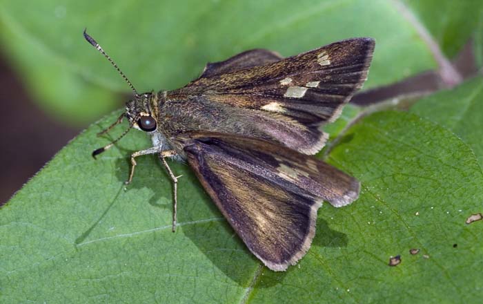 DescriptionThe little glassywing has a wingspan of 1 to 1.25 inches. It has dark brown wings with white patches. It has an especially distinctive middle spot on its forewings. In females, this spot is slightly square and translucent. This is where the name glassywing comes from! In the male, the center patch is long and slanted. The male has a black stigma on his forewings. The stigma is a section of scent cells located on the forewings of the males of some species of butterflies. The undersides of its wings are a dark brown, sometimes with a few dull spots. Range |