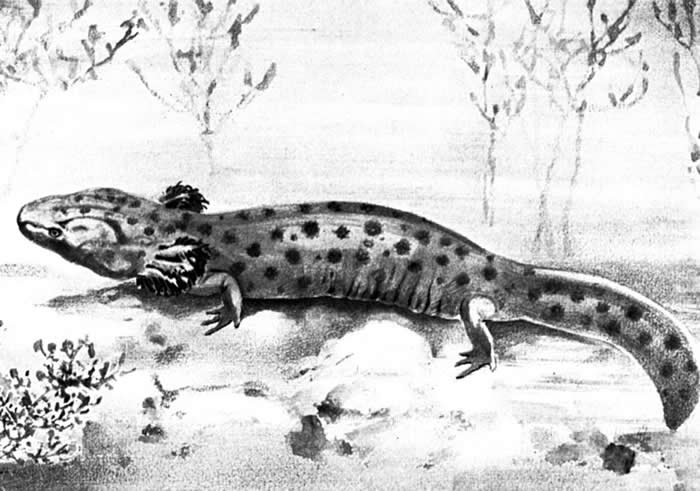 The mudpuppy lives on the bottoms of lakes, rivers, and streams.
