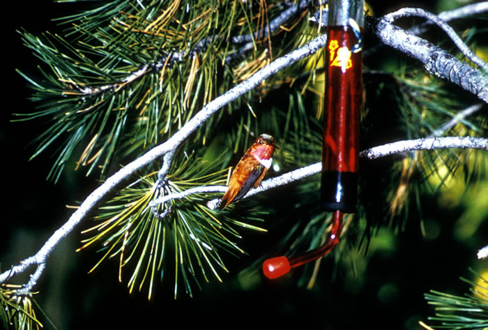 The rufous hummingbird is a solitary bird. The male is very territorial and will protect his mating territory by fighting off other males in mid-air!