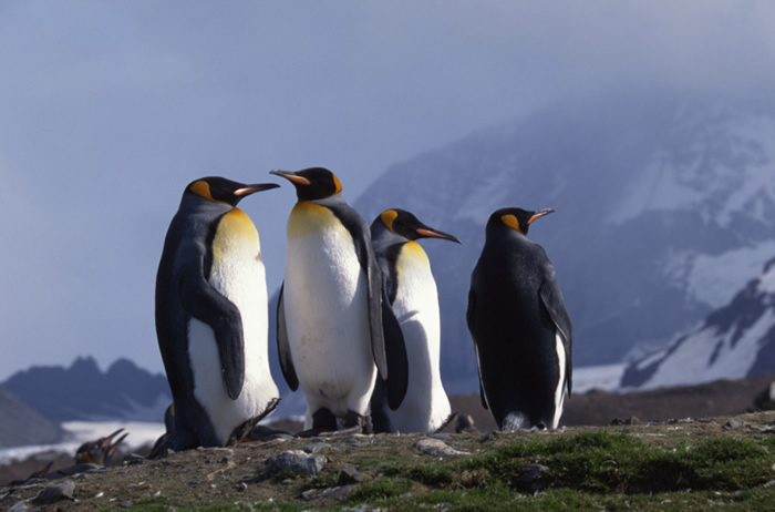 parrotsThere are 17 species of colorful birds in this order. Penguins are found in the Southern Hemisphere from the Antarctic to the equator. They range in size from 1.5-3.7 feet in height. They are black or dark gray with white chests and stomachs. They have stiff, flipper-like wings; long bills; short legs; and webbed feet.
