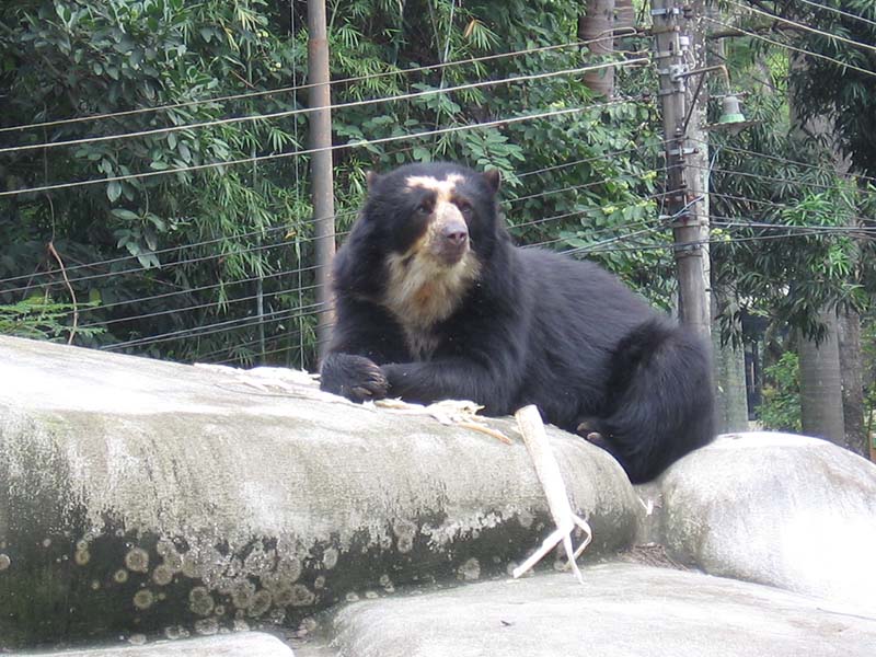 The spectacled bear is found in the Andes in Bolivia, Colombia, Ecuador, Peru, and Venezuela.
